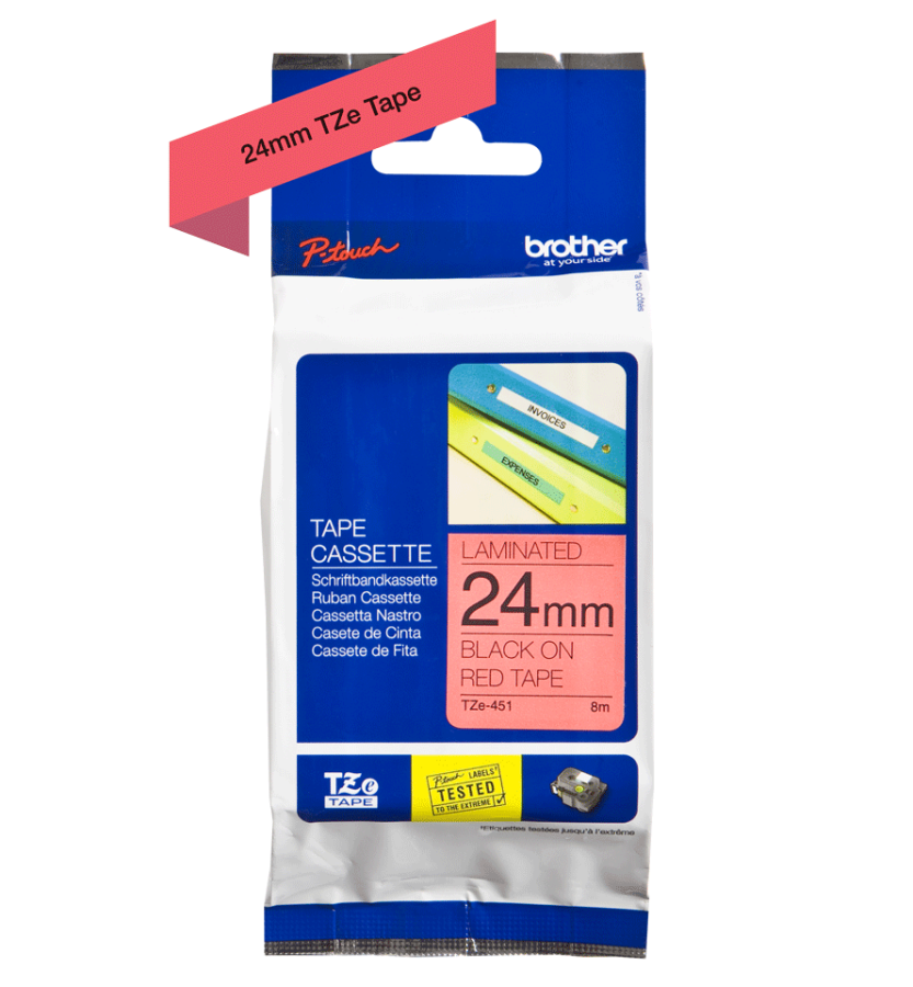 Notify me when its in stockÜrün Adı : Brother TZE-451 Kırmızı Üzerine Siyah Orjinal Etiket 24mm x 8m - PT-D60